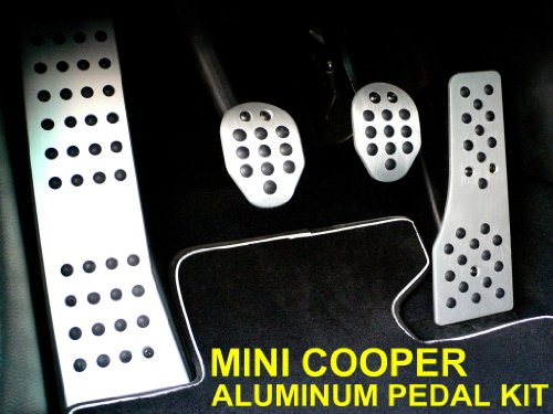 Aluminum Series Our Aluminum Series continues to be the overwhelming choice of performance enthusiasts because of the outstanding style and quality. Spec & Features: The evolution of hugely popular aluminum series Constructed of anodized aircraft grade with beveled edges Only 4mm in thickness for the best direct pedal feel and response Top quality aluminum alloy employed with only 4mm thickness for the best direct pedal feel and response No-nonsense design with finely polished surface for a race ready yet beautiful finish Lightweight and strong grip for confident pedal "Universal Fit" design to accommodate to most vehicles Easy to install, instruction and hardware are included Rubber grips can be easily replace if necessary For 2006+ model, R55, R56, R57, R58 and R59
