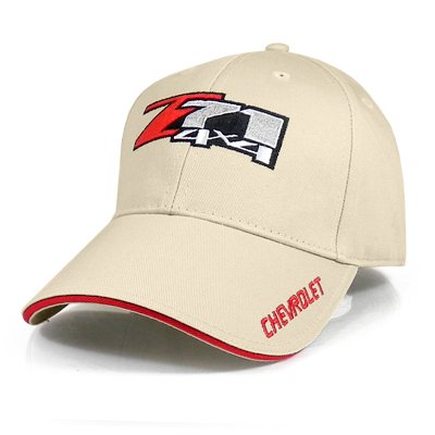 - Natural color 6-panel hat with embroidered Z71 4X4 logo on the front. Features Chevrolet on the left side of the bill. The visor has a red insert.